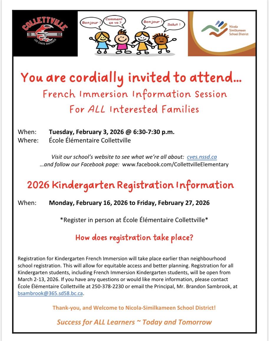 Breadcrumb Home Announcements announcement Kindergarten Registration & FIM Information Session Posted: January 22, 2026 - 5:26pm Expires: March 13, 2026 - 5:00pm Announcements Kindergarten Registration & FIM Information Session News Stories Family-Teacher Conferences Student Learning Survey 2025/2026 Next Steps - Round 2 - Consultation Meetings Our Calendar Girls Basketball Tournament Feb 10 NFT Session - Violence Is Preventable (VIP) - Div 2 Feb 10 Boys Basketball Practice Feb 10